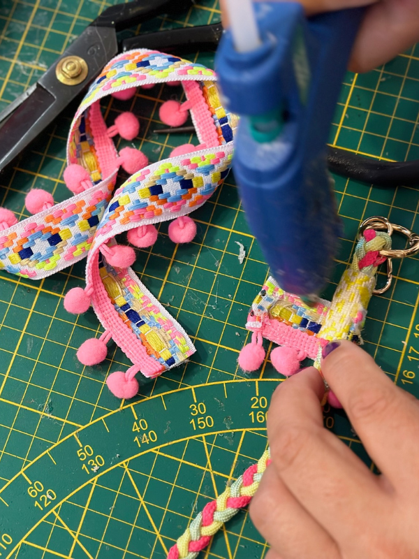 Nous ajoutons les derniers détails : couture, sangle ou ruban, pour une touche unique et artisanale.